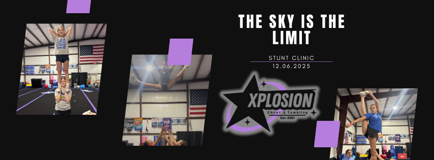 Join us for a stunt-focused clinic where athletes will work on technique, grips, body positions, and confidence in a safe, structured environment. Perfect for cheerleaders wanting extra practice or to level up their skills!
